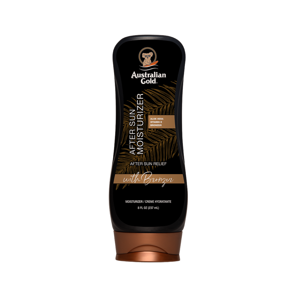 Forlæng din sommerglød og giv din hud intensiv pleje med Australian Gold After Sun Moisturizer med Bronzer. Denne luksuriøse after sun-lotion kombinerer dybdegående fugt med en let, naturlig bronzer, der giver huden en smuk, solkysset glød.