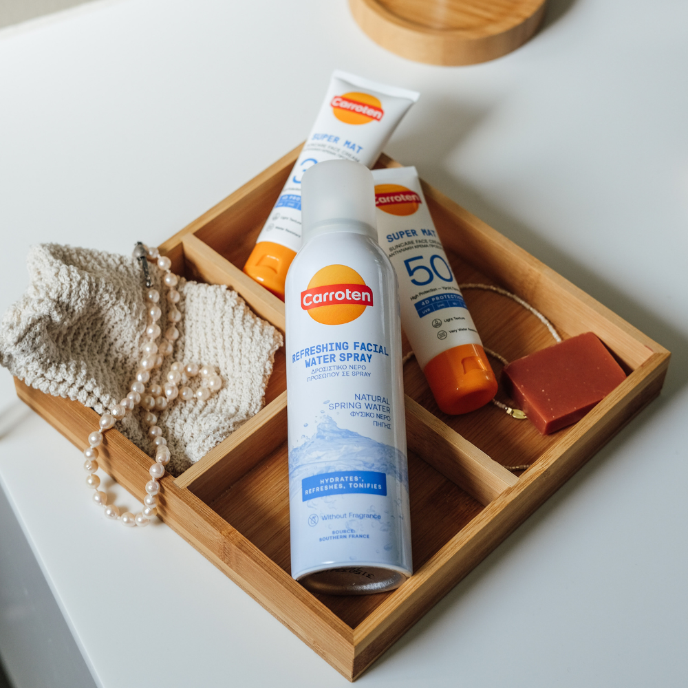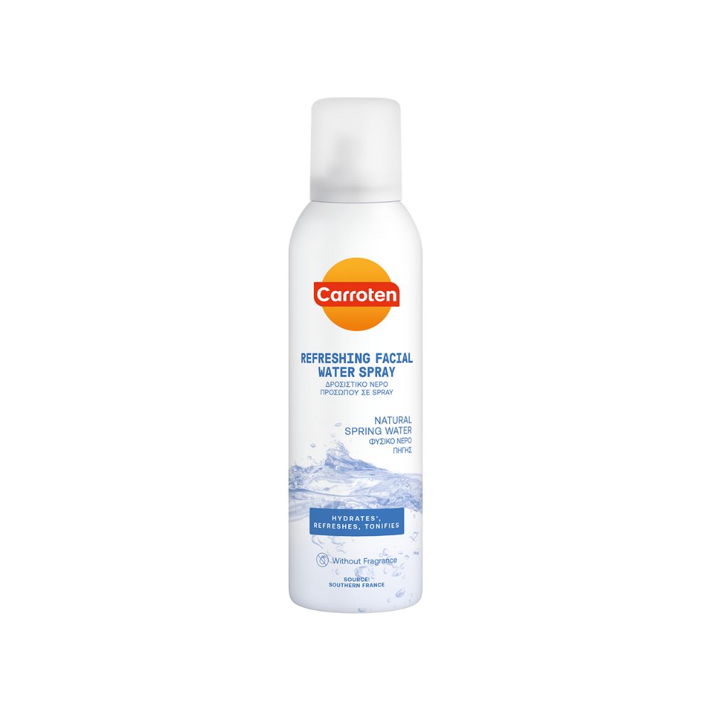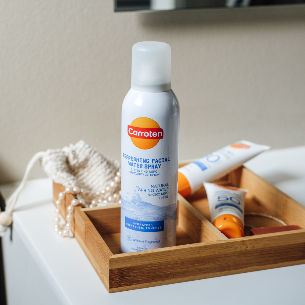 Carroten Facial Water Spray er en ultra fint forstøvet mist til ansigtet og bør være en vigtig del af din sommerferie hudpleje.